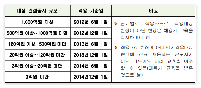 2-3 교육대상 - 법 적용일 이후 건설현장에 신규로 채용된 일용근로자