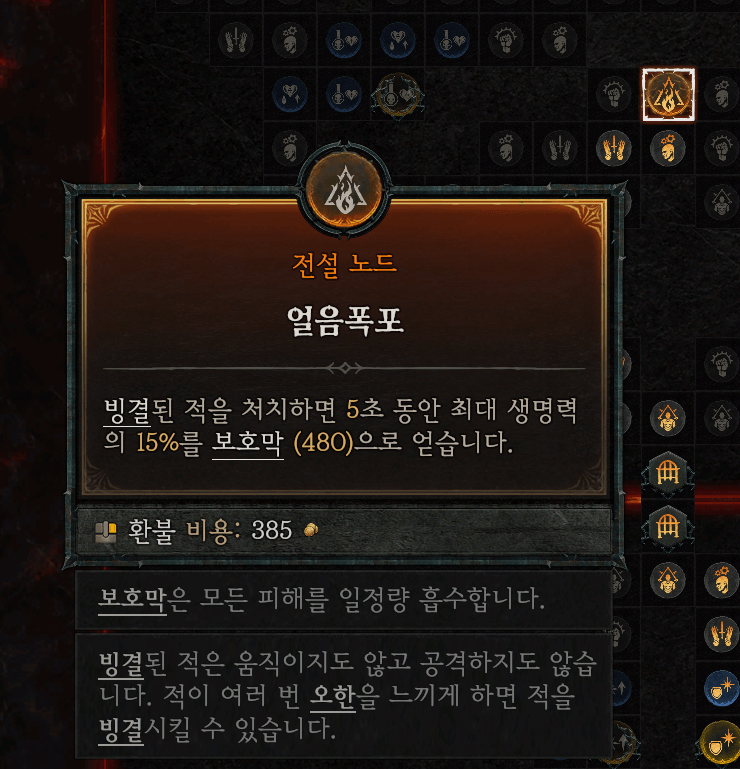 (각 직업마다 보드 내용들이 틀립니다. 원소술사 캐릭터이라 화염, 전기, 냉기쪽 관련 보드들이 나옵니다.)