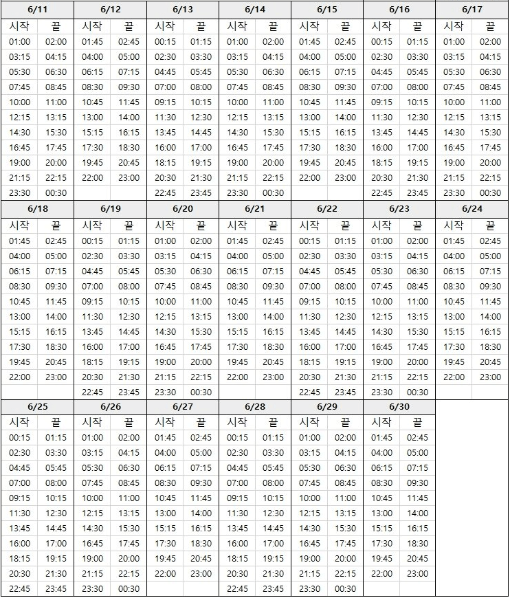 마지막으로 인벤에 올라온 6월 지옥물결 시간표를 알려드리겠습니다.
