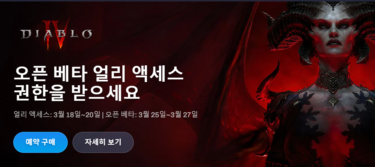 | 디아블로4 두번째 오픈베타 일정 및 직업추천 (0) | 2023.03.24 |