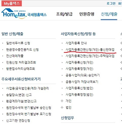 3)사업자등록증간편신청(개인)-통신판매업(여기서부터 공인인증으로 로그인)