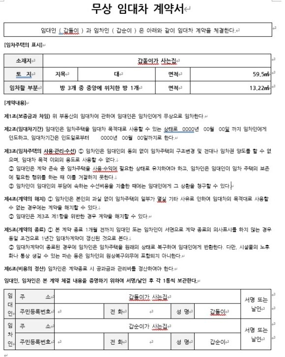 부모님집이나 가족들 집에 무상임대차 계약서를 써야한다면,