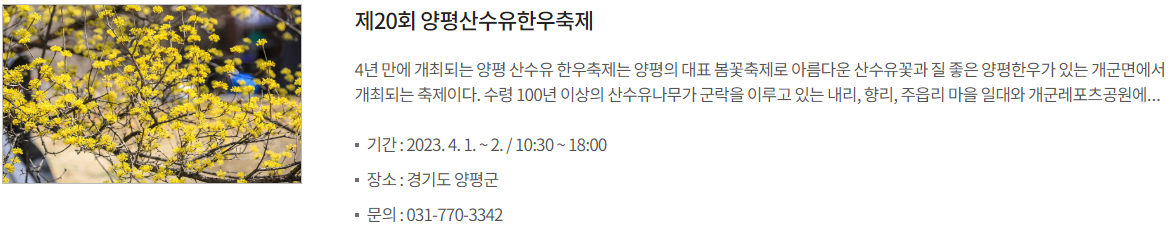 2.제20회 양평산수유한우 축제(이미지 클릭시 관련 사이트 이동)