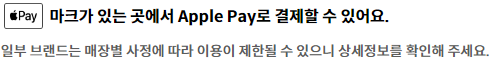 위 공식 참여 브랜드 사정에 따라 애플페이 이용이 변경 또는 중단될 수 있습니다.